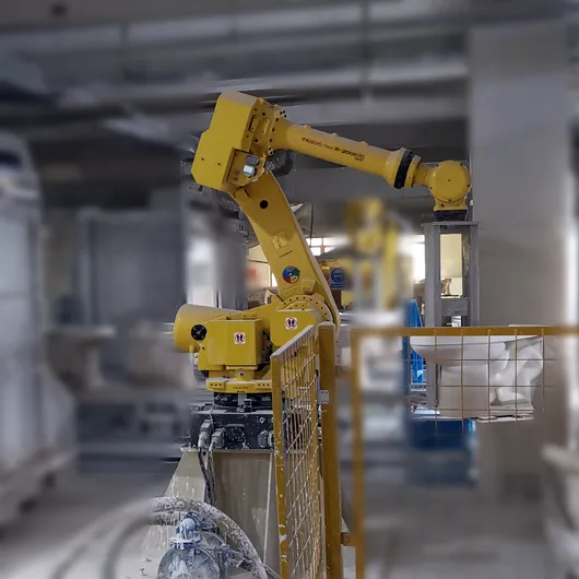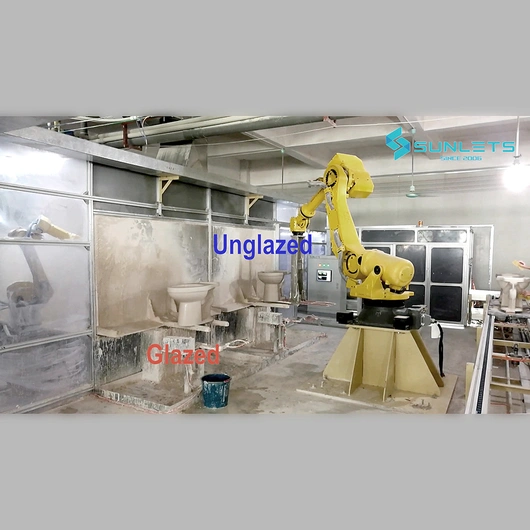 Glazing robots manufactured by Sunlets Technology are capable of being extensively integrated with a variety of accessories currently available on the market. These accessories include controlled turntable axes and Mass Control, which is a system that regulates the feeding of glaze to the spray gun. Additionally, Sunlets Technology's glazing robots are able to work in concert with other components of the glazing system, such as carousels, transfer units, and conveyors.